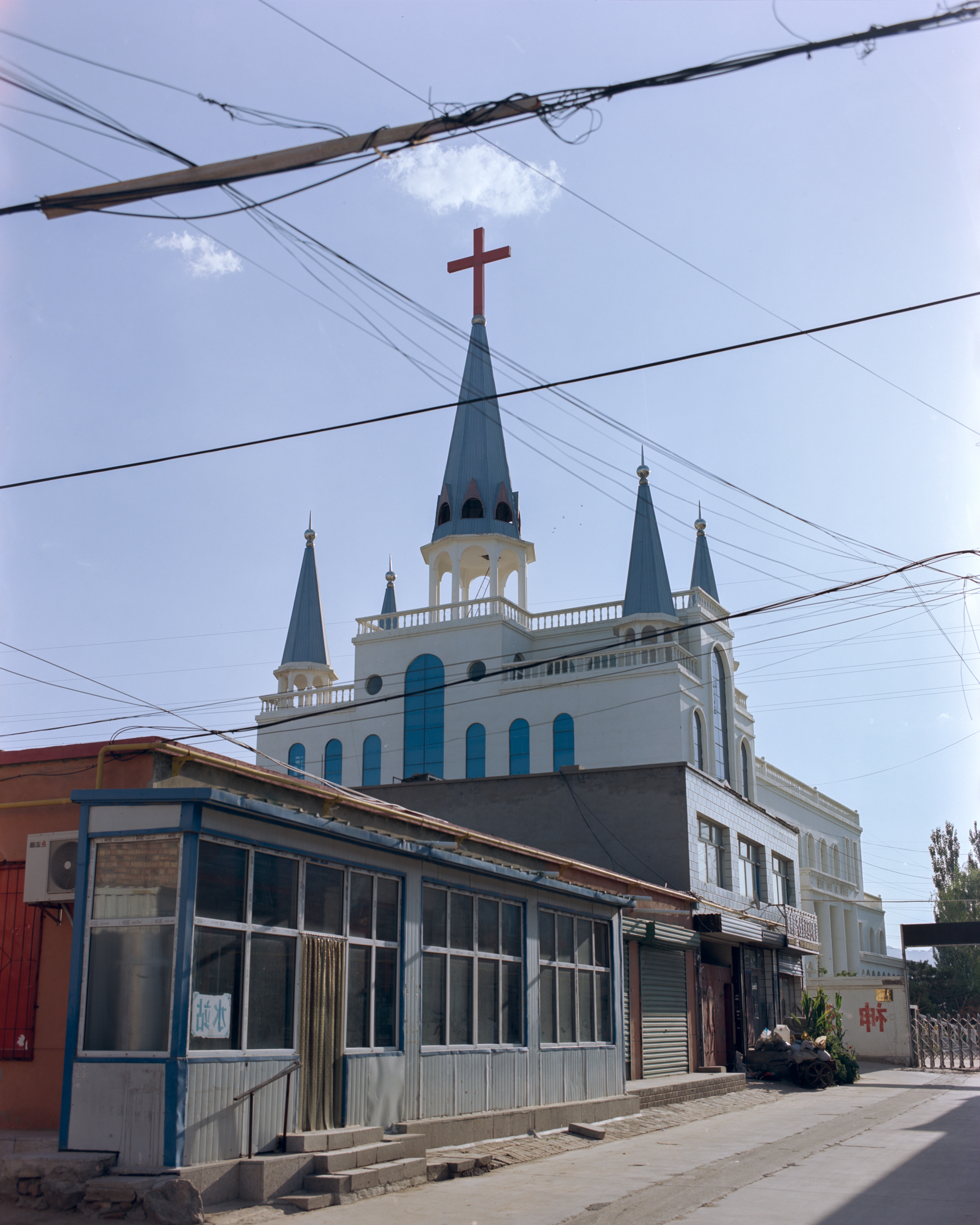 The power lines in the overexposed sky would need to be fixed or removed in an editing step. If we take the color negative film version FilmType SubType FilmGamma seem needed, that can be tricky but this state leads to no color balance shift between clicking the gray wall and the white of the sign in the window which is not half bad. Since we have the meta file I don't need to say in what way I played with it...