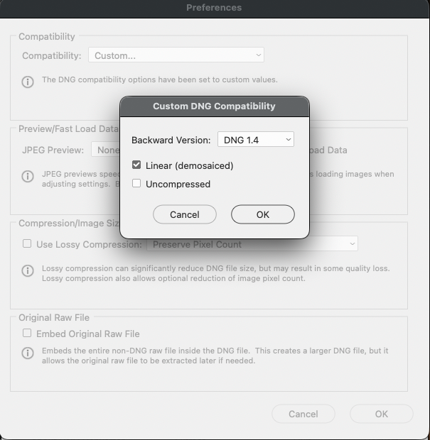 In order to make such a DNG file that is already interpolated we need to tell DNG Converter, or if we routinely want such I can make MakeTiff be able to put them out easily. Here is the way to do it manually: