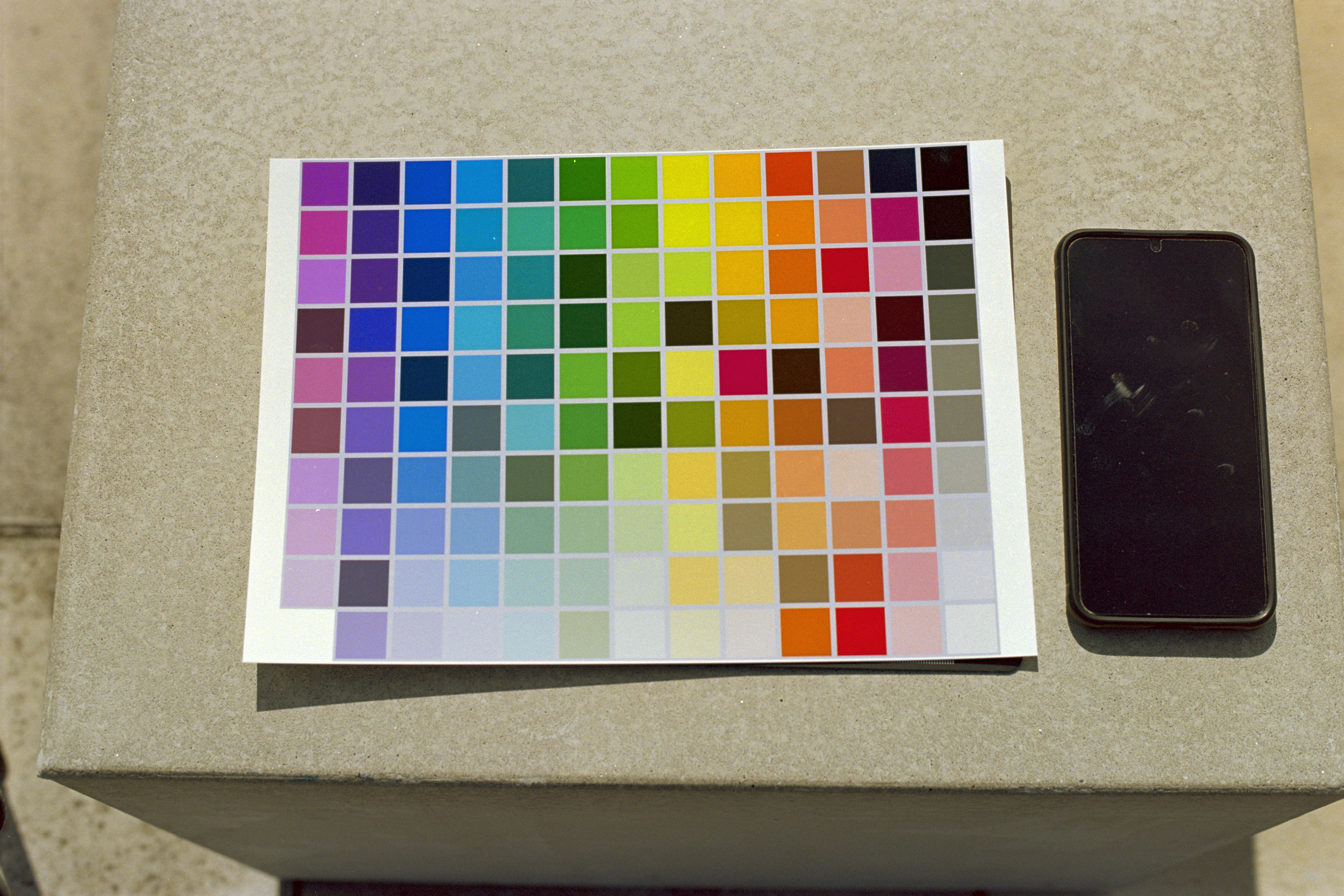 I always shot a ColorChecker on the films I test. Using DC Mode on this Scanned Neg however generates quite a strong blue cast on one of the samples which shouldnt be there. I tried all the Portra 160 Film Types, and this doesnt help. This day I also shot a bigger color pattern I printed myself, which isn't reference grade as the ColorChecker, but you have more colors to check if you like that.